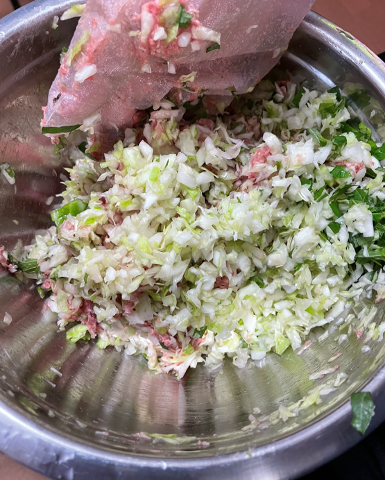 合い挽き肉で、大葉入りで。バット2つ分。約80個作りました。
