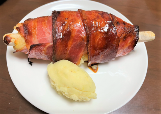 マッシュポテトonベーコンで、オーブンへ。
