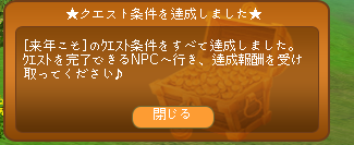 クエスト完了ヽ(〃'▽'〃)ノ☆゚'・:*☆オメデトォ♪ございます
