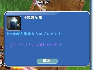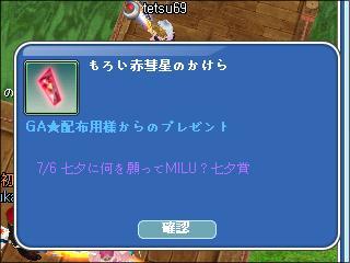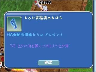 トップ > MILU日記 > メンテ明けのプレボ~七夕賞受賞w