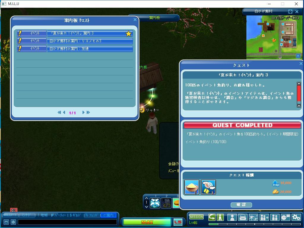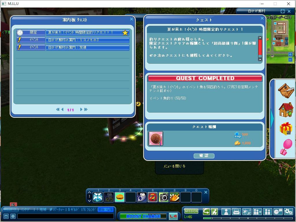 以上が、完了したイベントのクエストです。