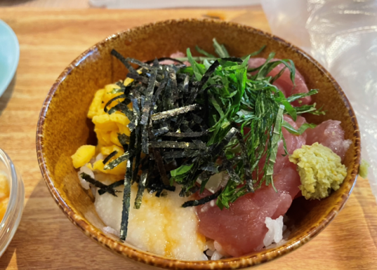 朝食が最高でした。ビュッフェで鉄火丼作れました。