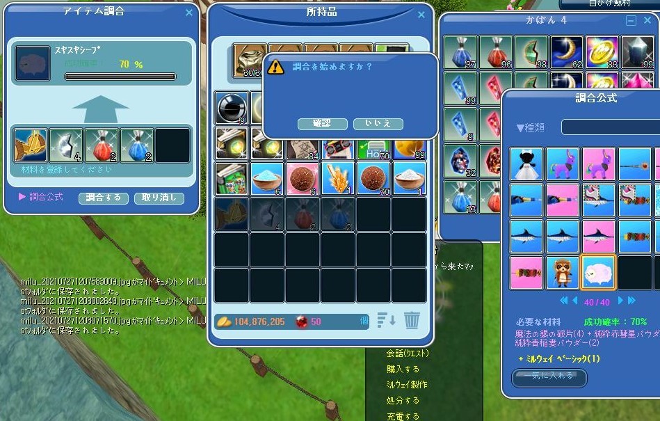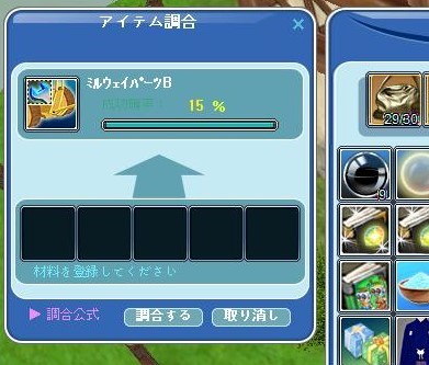 ミルウェイパーツB、低級材料の方で15%一発で成功。