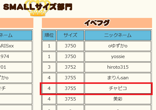 ずっと 0点が続いてたイベ王、イベフグSMALLサイズ4位頂いて2点GETました~(笑)