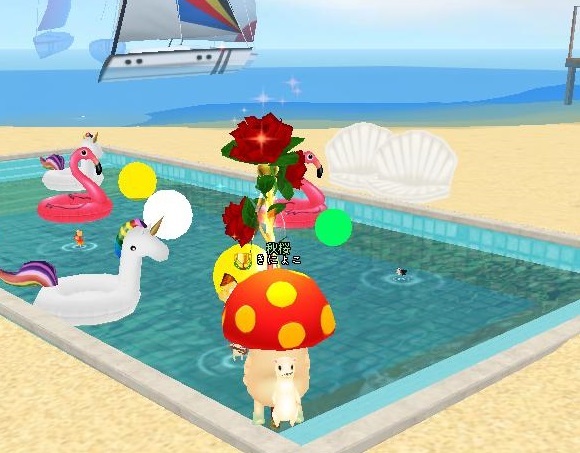 エモおめでとうございますヽ(=´▽`=)ノきにょこさんがプールのかわいいアイテムに馴染んじゃってます~(*´艸`)