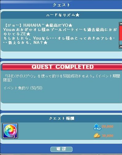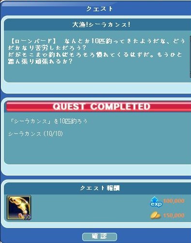 イベ魚50匹の方は、3日でクリアできたのですが、シーラカンスのクエは時間がかかりました!