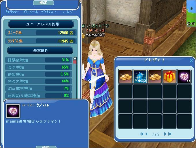 | ゆに12500おめでとうー^^ ハート貰ったのねw |