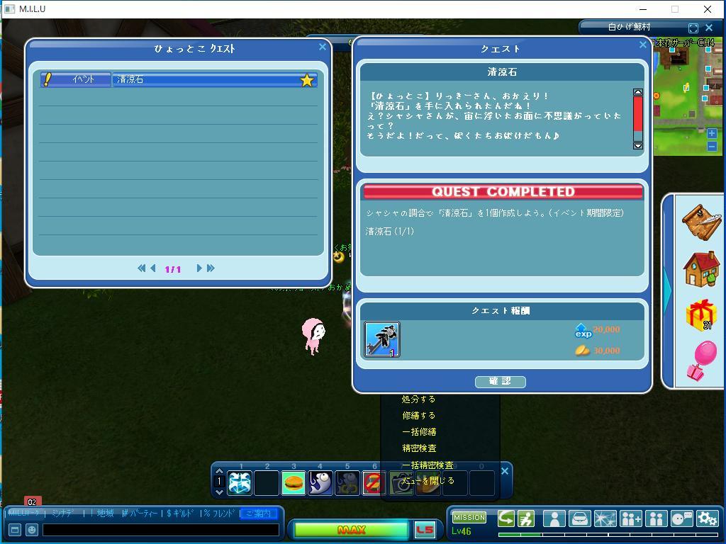以上の三つが、完了した、イベントのクエストです。