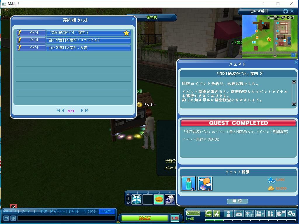 今日は、イベント釣りだけをしていました。 イベントのクエストは、一つだけ完了しました。
