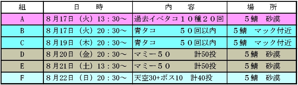 タコ長も 結構長い事やってます タコ長してて 何考えてるかってね 何処にどういうタイミングで投げたら ボス出るかな~~~ 今日は出てくれるかな~~ クエストの人 いるかな~~ 時間は大丈夫かな? 集中切れてきたかな? そんなことを考えて 投げてますけど... 青タコボスが出ない!!!!!!!!