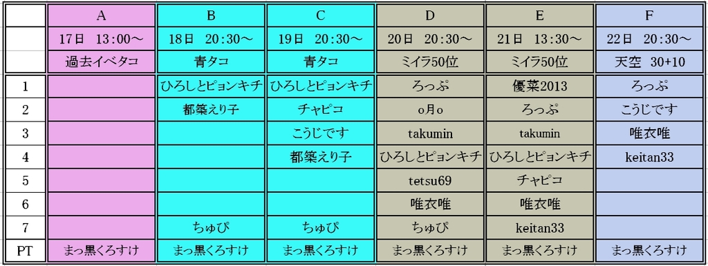 予約表なんですが、Dの希望がCに入ってます