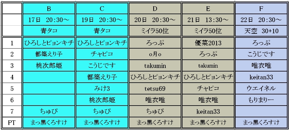 明日の青タコも参加者が8人に満たないので開催地を0鯖に変更致します