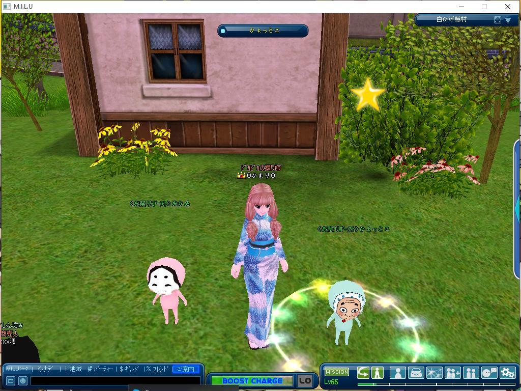今回は私は ピシュルの木屋裏の場所で 団扇で わっしょい!!わっしょい!