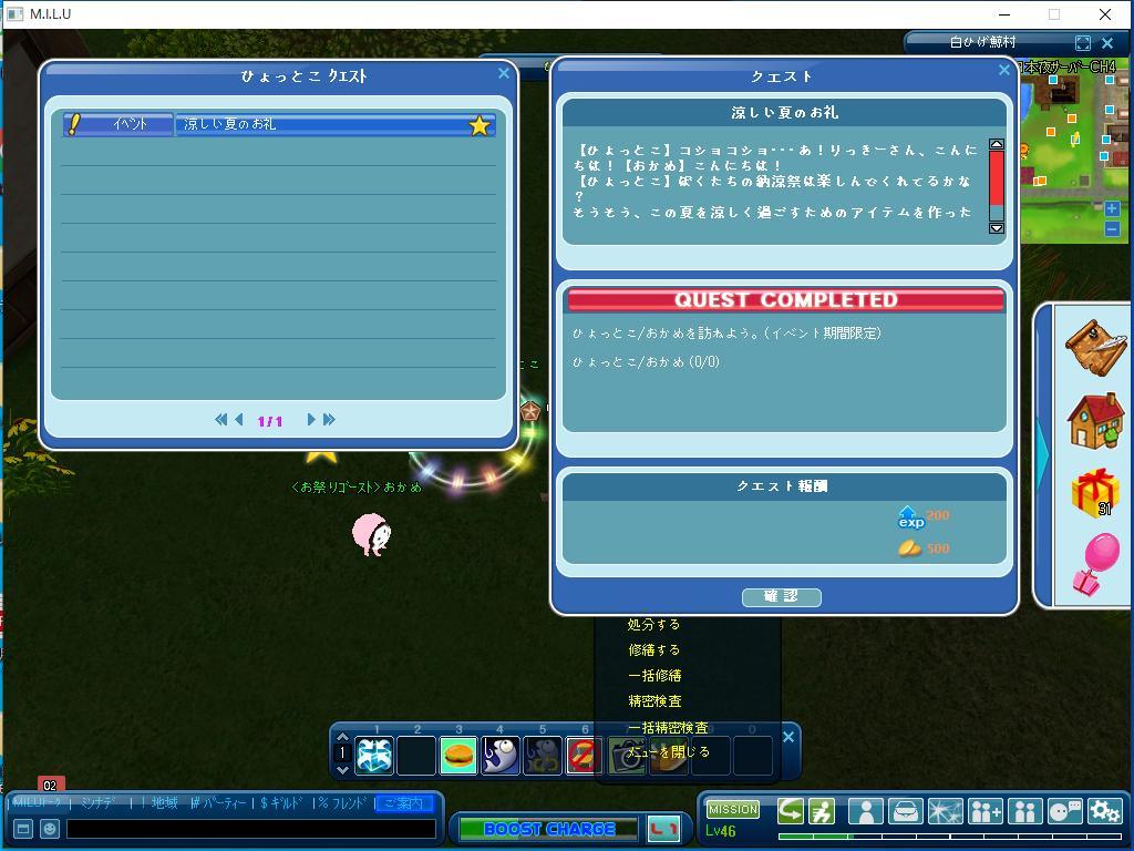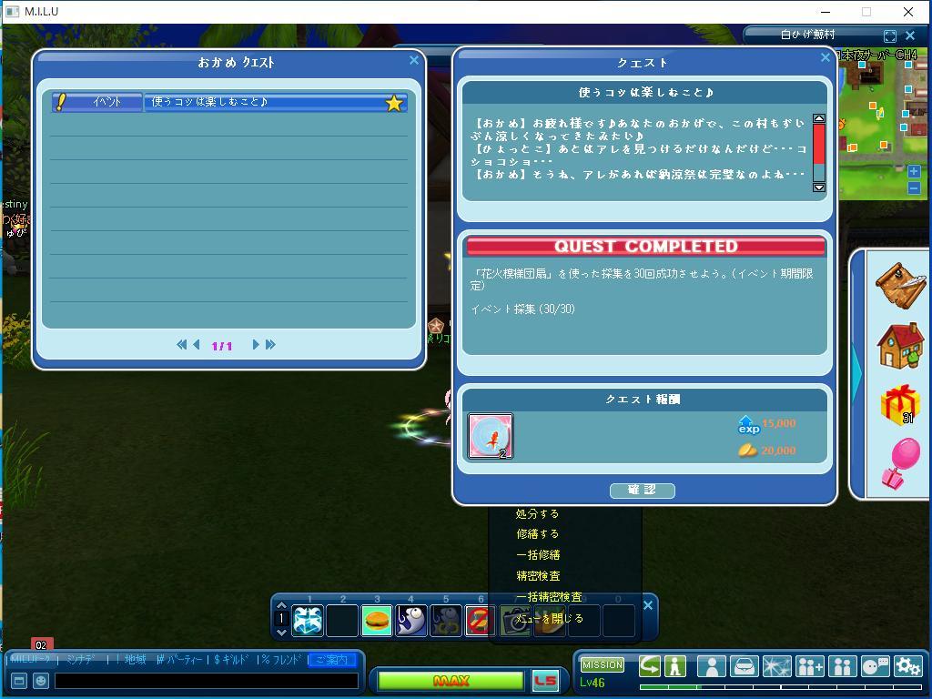 以上が、完了したイベントのクエストです。