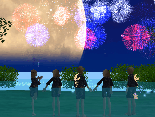 | 数人で花火あげると花火大会みたいになるねw |