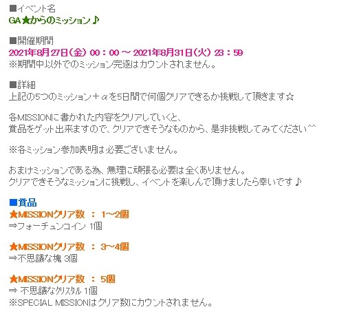 今日から~5日間の「GA★からのミッション」がスタートしましたね~
