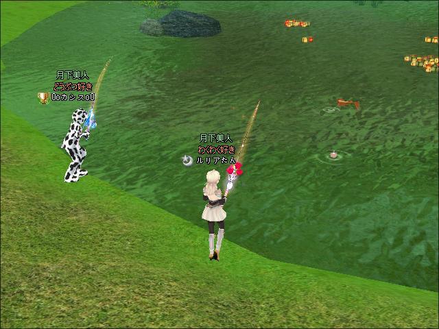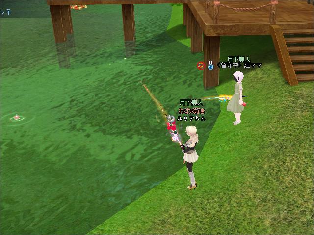 夜、ギルメンの00カシス00さんと釣りをしたわ。