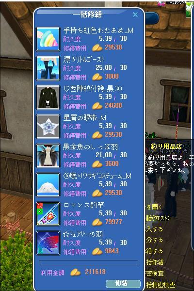 今さっき、装備品を修繕してきましたが、