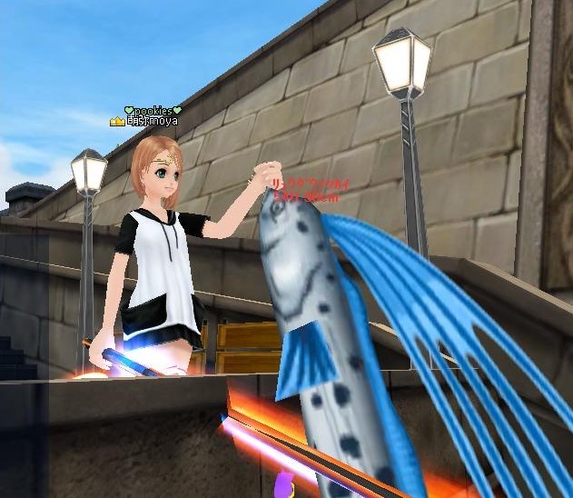 そして。。。Lv46にアップするときに 釣っていた場所で。。。 錨の餌で釣っていたのに、。。。。材料きた?!工エエェェ(´д`)ェェエエ工 釣り上げたら リュウグウノツカイでした^^ ヽ(〃'▽'〃)ノ☆゜'・:*☆