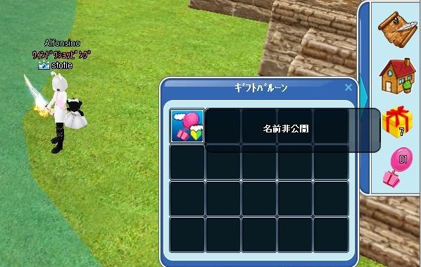 ギフトバルーンが飛んできたのですが、なんとお相手の名前が“非公開”となっていました!