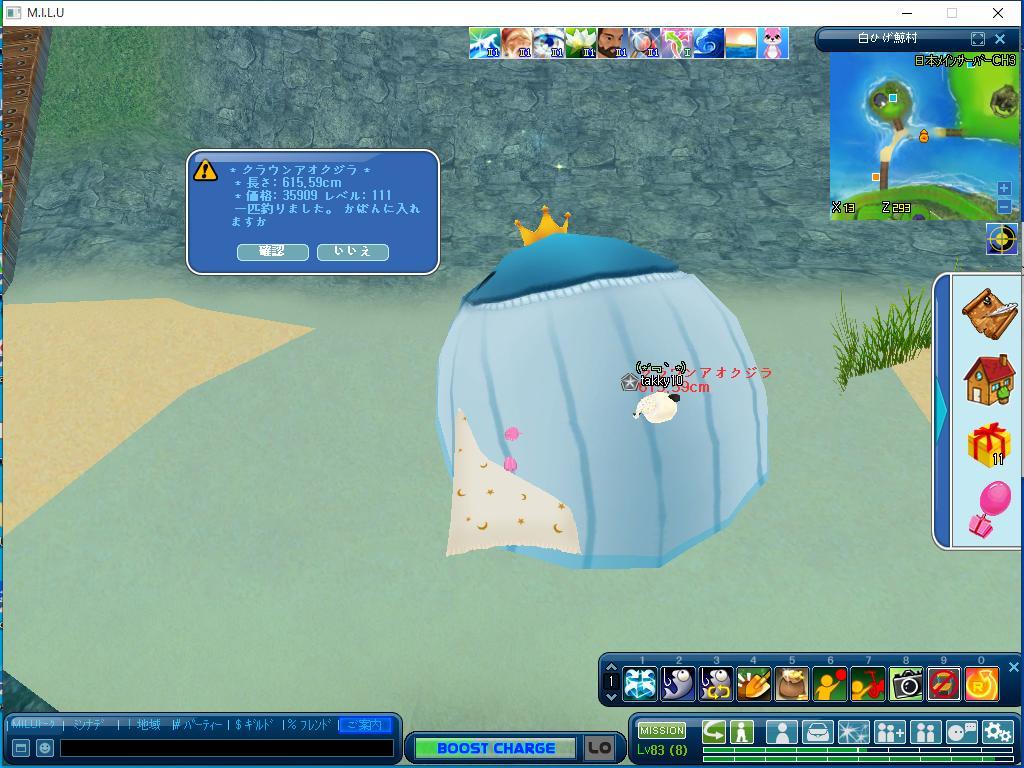 | ちゅんの段階が上がれば鯨釣れるからなー!7段階以上に上げるとたまに釣れる気がする! |