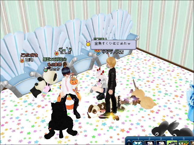 最後は、はしおくんがまき散らすお菓子を拾おうと群がり・・・