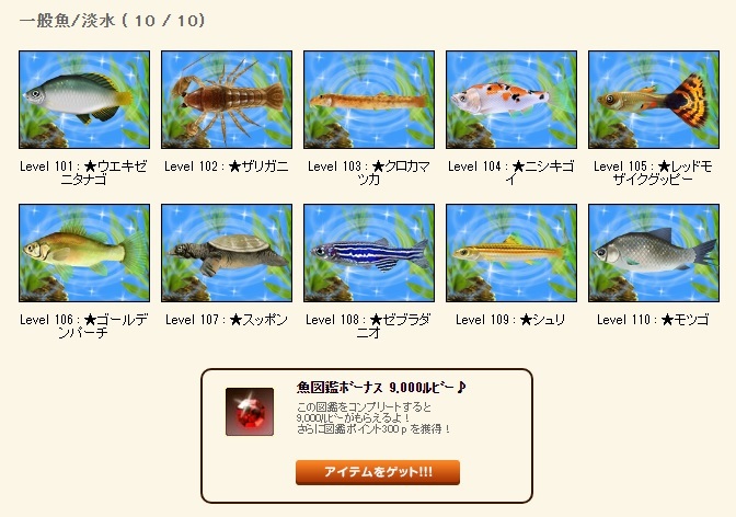 | 魚図鑑完成おめでとうございますーバンザイー |