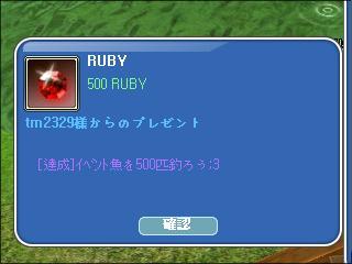500ルビーは美味しいなぁ。(*´▽`*)