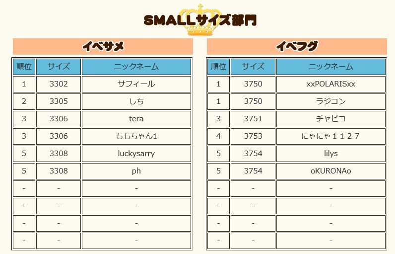そしてよく見ると、イベサメSMALLもしぶとく5位、ダブル入賞でした。 今月はこれが最初の入賞、40位にも入っていません。 でもよかったー、約一か月ぶりでーす^^
