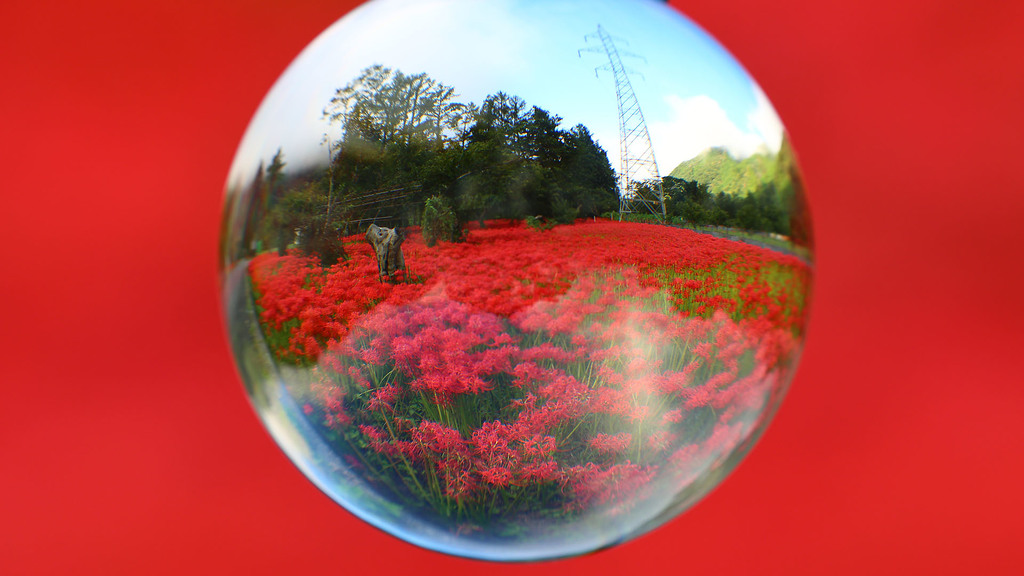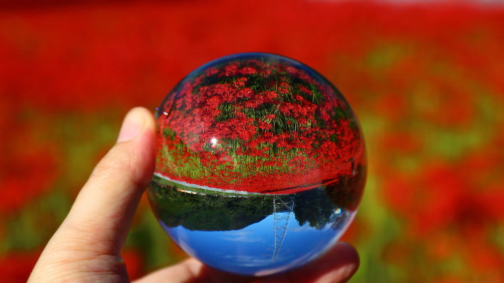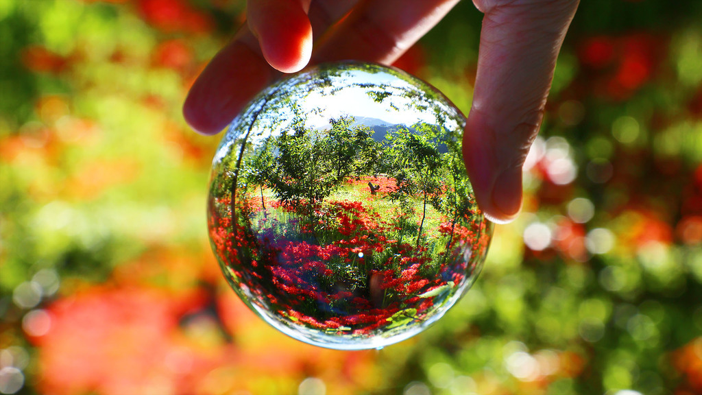 球体を通してみると、なんか別の景色みたいですね^^ |