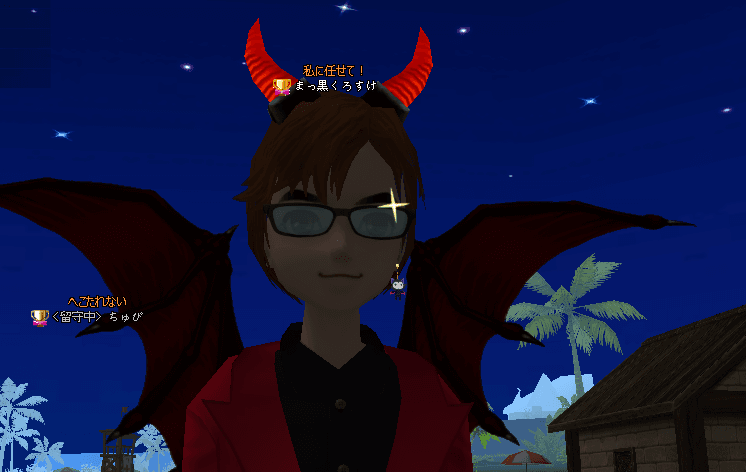 | デビルの角、若かりし頃は嬉しい装備だったなあ^^ |
