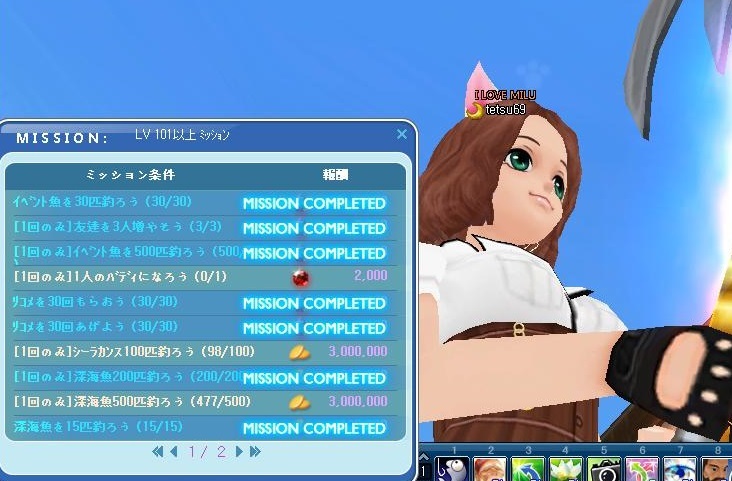 昨日は休みだったのでデイリーミッションクリアです^^シーラカンス100匹まで残り2匹です^^