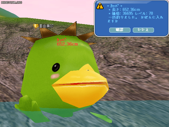 今日は、メンテの日。 イベ釣りは、なかったので、大物釣り。 でも、ダメでした。 そして、メンテが終わった、夜。 久々に来たーーーーーーカッパ君。 19時53分頃、 通算342匹目、ユニーク魚通算555匹目。 なんか、久々に見た感じ、うれしいな。 よく来てくれました、ありがとね。