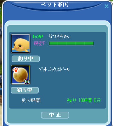 Lv20のペットはまだ1匹しかいません。釣りより露店で頑張らせたい・・・w