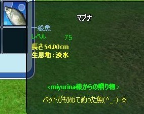 さてー ペット釣りが実装され、フレさんのペットが最初に釣ったのが ”兄”だったそうですーーーーww みゆさん、ありがとうございます^^