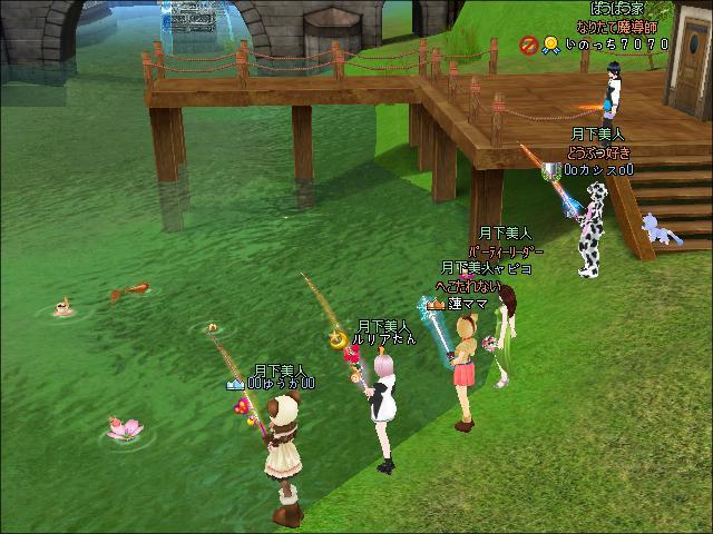 夜、ギルメンさんたちと釣りをしたわ。