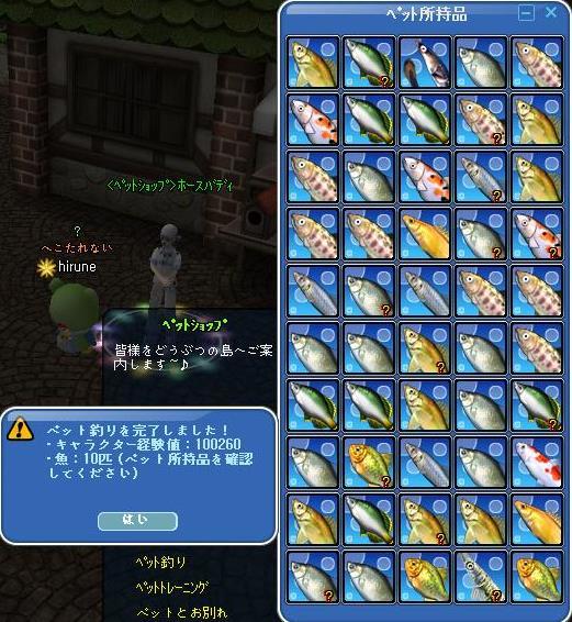 | ペット釣りやってみましたよ^^Lv upしなくていいペットじゃないとだめですね^^ |