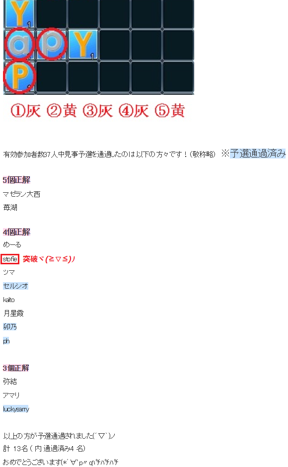 それからそれから、以前の日記で合同イベの3回目に参加できなくなり、予選通過できるか危惧しておりましたが、無事2回目の予選を突破していたので、決勝進出が決まりました(∩´∀`)∩