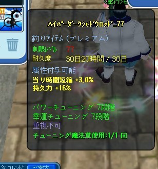 今竿キャンって事でチューンとハイパーしました^^ 青銅破片から銀破片にして ラスト一回ってとこで 7-7出来ました(´;д;`)ウルウル ハイパーはまあまあなのが付きました^^