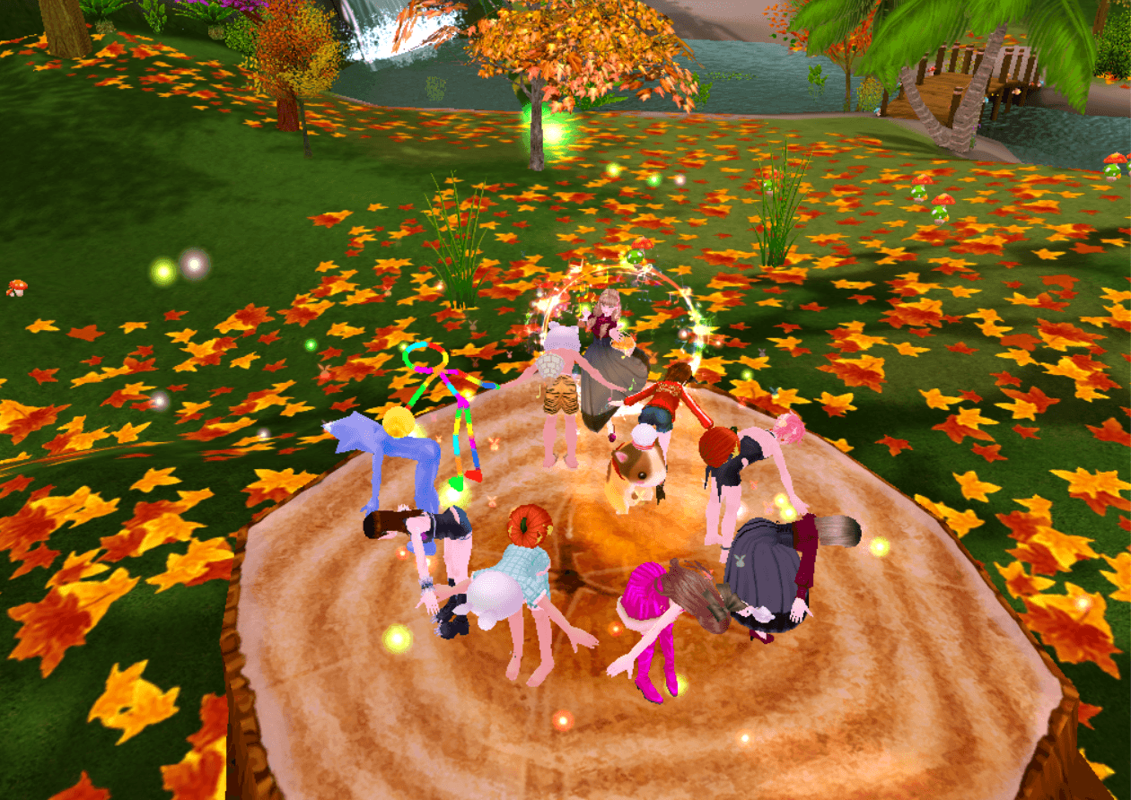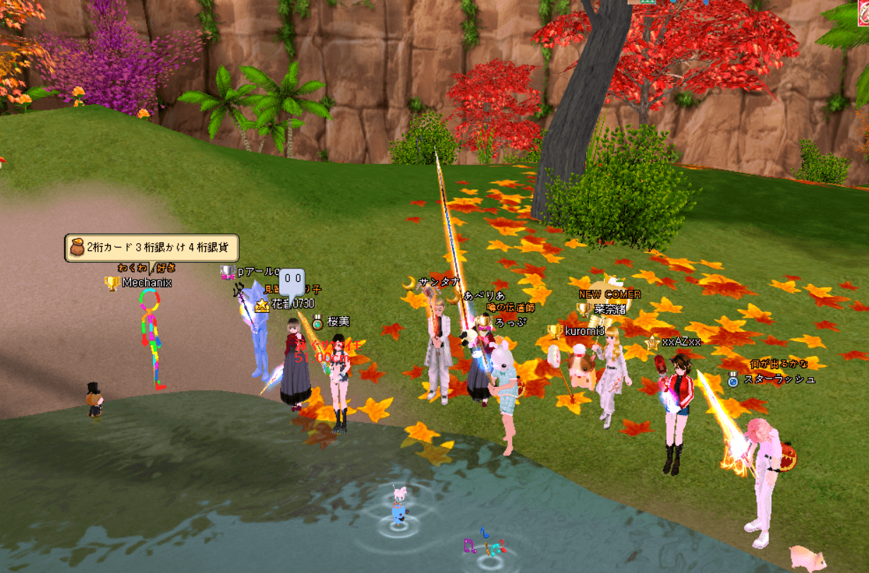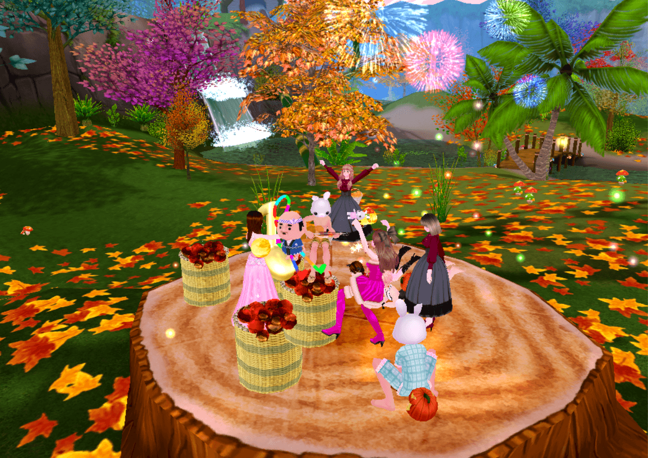 紅葉と花火の中で楽しい宴
