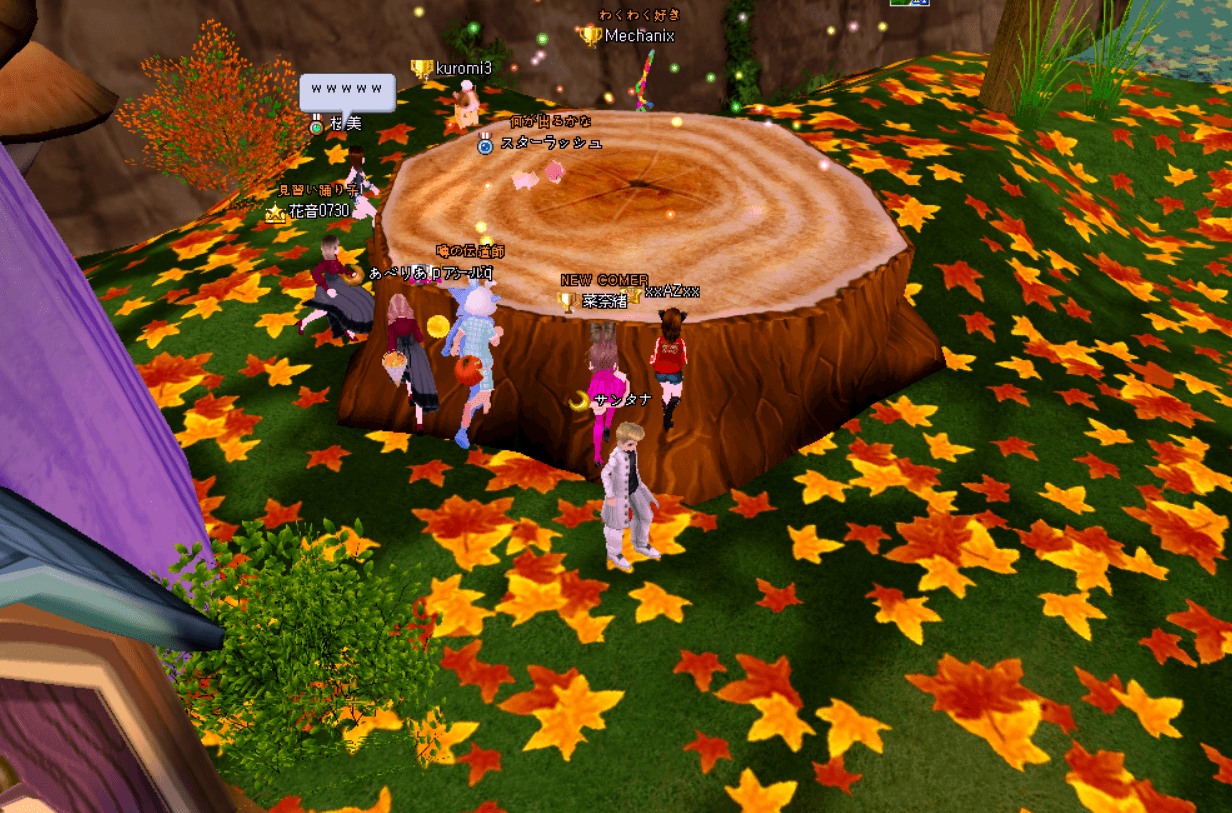 | 切り株の上が宴の会場になってるなんて~~~w |