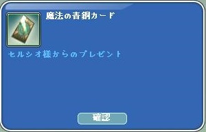 魔法の青銅カードを 頂きました。