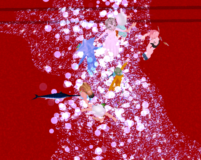 フリフリ浄化の図 日夜世のため人の為、フリフリの会は人知れず舞を披露しています。