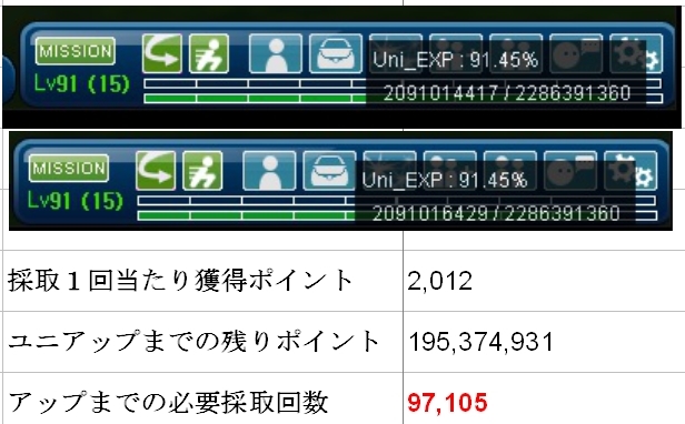 タコを頻繁にしてた頃は数多くのタコアップを見てきました 僕のバディさんは 掘りアップが得意技だった様ですw さて、ホリホリとイベ釣りしかもうしないだろうと 全ての属性装備を封印してミルの博物館行にした訳ですけど まさかホリホリでもアップってあり得るの?と 天空亀5の採取と90%超えのユニークレベルで検証しました  あはははは なんと残りたった8.55%を上げるのに 9万7千回も採取しなきゃない!! 仮にですよ 1日300回採取したとして(まず不可能) それでも1年掛かるアハハヾ(≧∀≦*)ノ〃