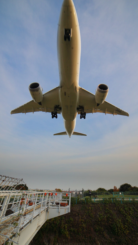 伊丹空港は滑走路のすぐ近くで撮影できるので、頭上を飛行機が通っていくのが撮れたりするのです。