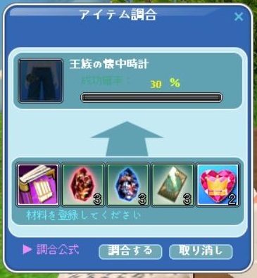 これで、今週もコレブは全て完成^^ 週末は、掘り掘り三昧になりそう^^ …と、その前に 完成したコレブを調合しました^^ 修繕可のアクセを作れるみたい。