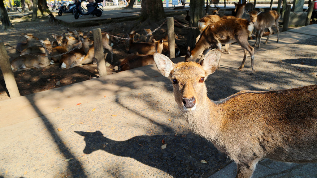 鹿がいっぱい。宮島にも鹿がたくさんいるけど、宮島のほうが食べ物を求めて観光客を襲ってくる(?)のでたちが悪いw