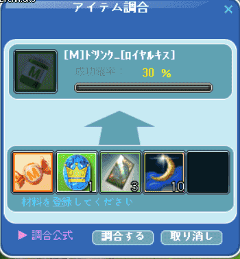 相方さんから飴もらって調合したら5回の内1回失敗で2セットできた!