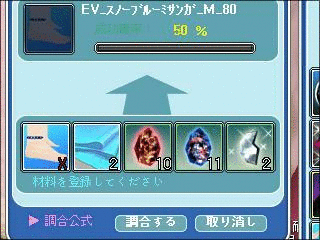 | 調合成功おめでとぉござぃますﻌﻌﻌﻌ☆ ꒰ϋ꒱۶✿メンテ明けもヨロシクぉ願いします✿ |