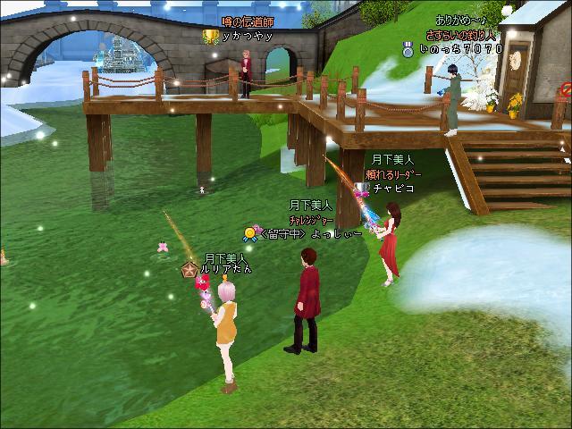 夜、ギルメンさんたちと釣りをしたわ。